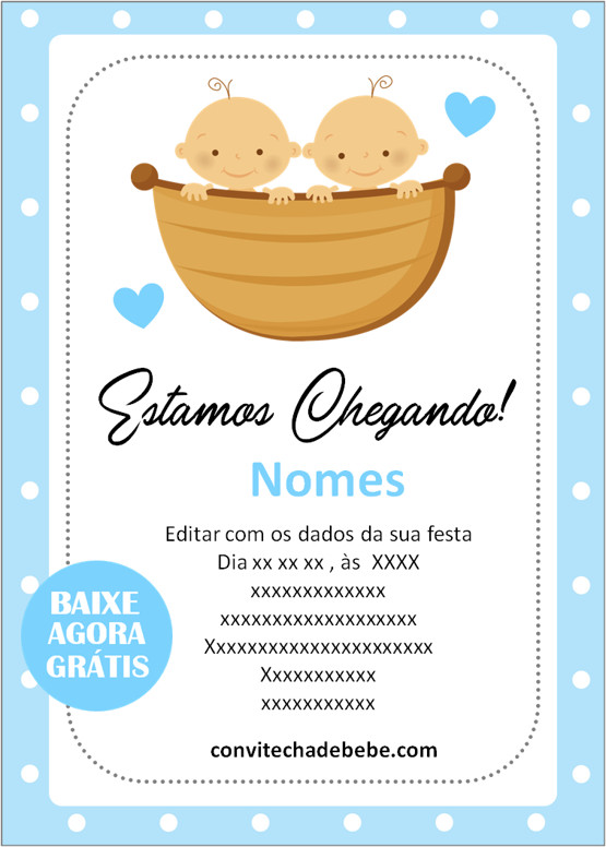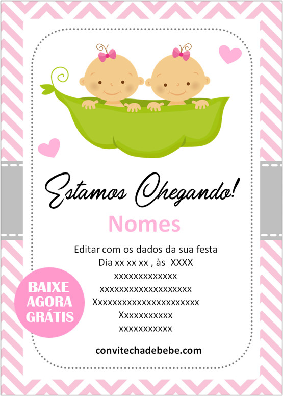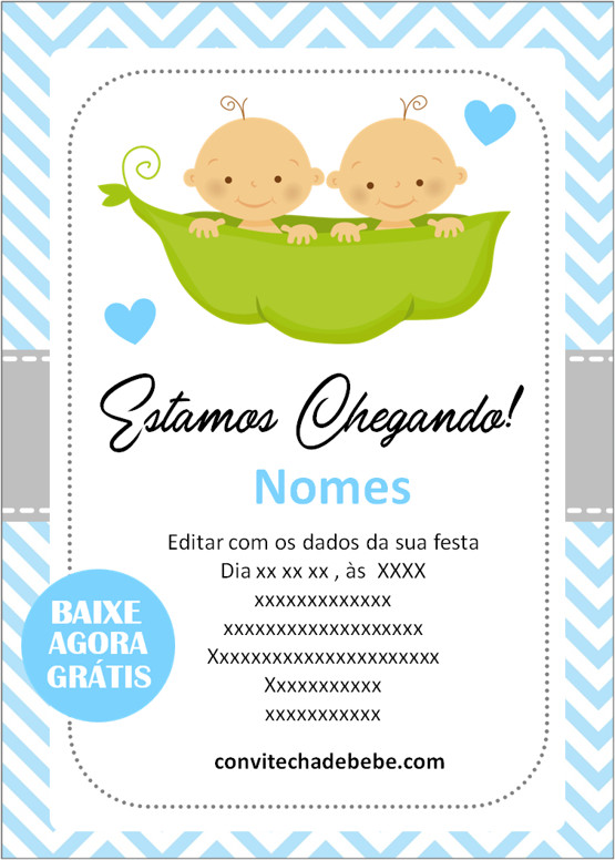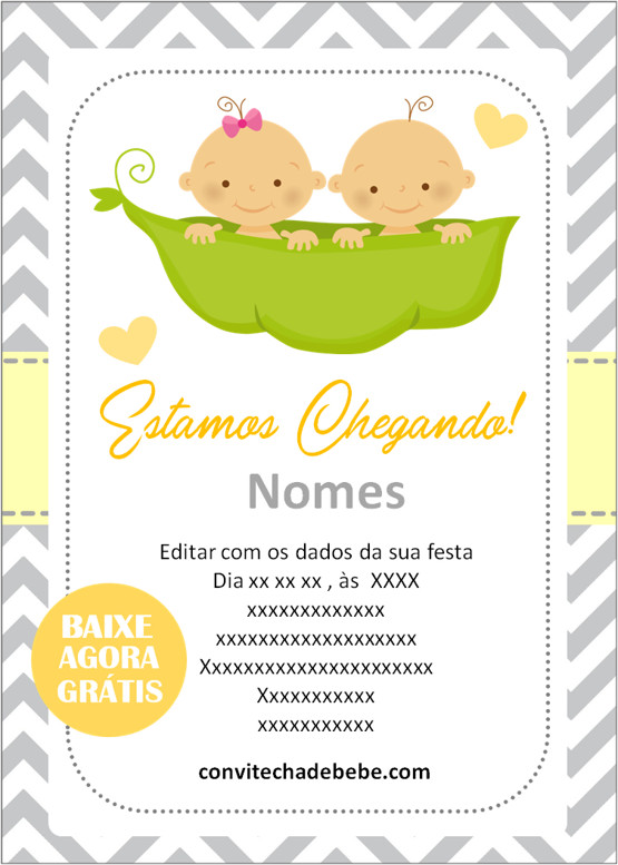 Convite Chá de Bebê Gêmeos grátis para baixar