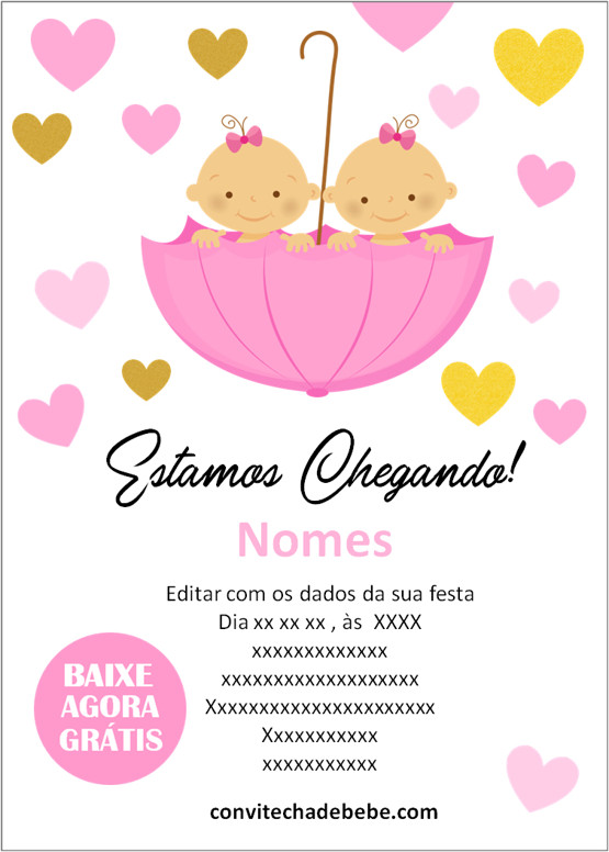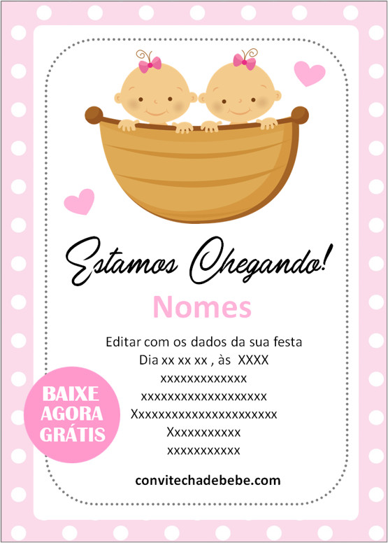 Se você está procurando convites de Chá de Bebê Gêmeos grátis para imprimir e editar online, não perca nossa coleção exclusiva.
